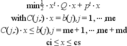 [x,iact,iter,f]=qpsolve(Q,p,C,b,ci,cs,me)
