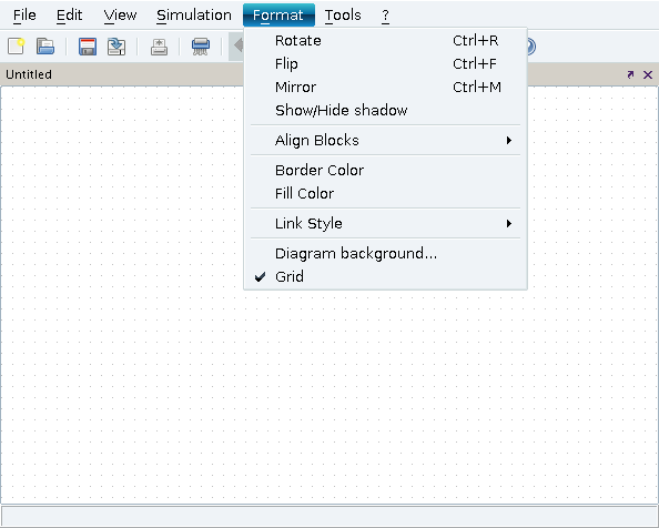 This menu allows to activate / desactivate the grid. Using a grid, it is easier to place a block on the working area.